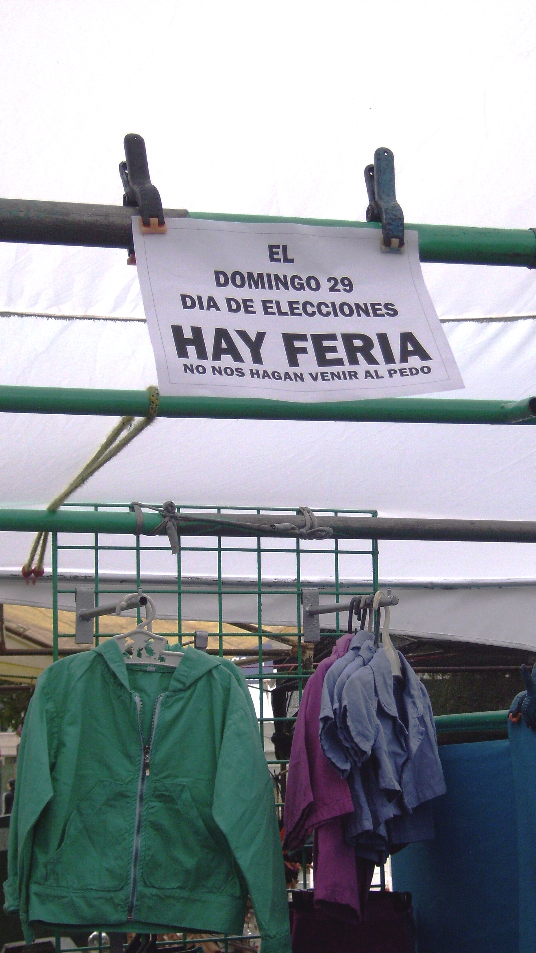 “EL DOMINGO 29, DÍA DE ELECCIONES, HAY FERIA. NO NOS HAGAN VENIR AL PEDO”…. Jajajajaja. Así dice un letrero colgado en un puesto de la clásica feria dominical de Parque Rodó y pienso que es tan representativo de la identidad uruguaya.