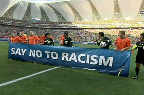 Por eso no todo ha sido caras pintadas y las famosas vuvuzelas… Como vemos, también hay contenido. Ahora las selecciones antes de los partidos leen declaraciones a favor de la tolerancia y en contra del racismo, al tiempo que sacan