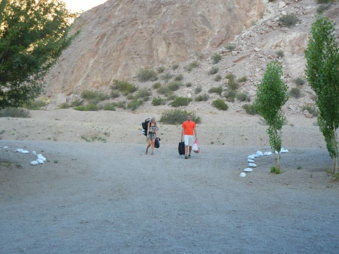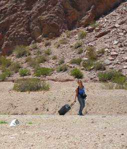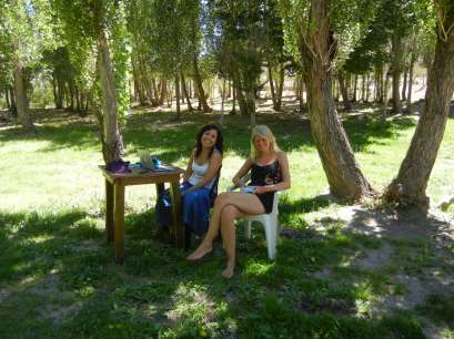 Al otro día le pregunto si se va y me dice que sí, pero a las 8 de la tarde, que ya habló con el chico del nuevo lugar. Yo paso todo el día afuera, en el pueblo, primero me encuentro con mi prima de Mendoza, que trabaja como maestra en Uspallata; llego a ella preguntando en la única escuela del pueblo y me dicen que trabaja en otra, hasta que doy con ella después que una de las asistentes de dirección de ahí me consigue a “el taxi” (luego el chofer me dice que son 6 en total) que trabaja ese día. Nos encontramos por fin con Vero y conozco a mis dos inquietos primos pequeños, sus hijitos Valentina y León.