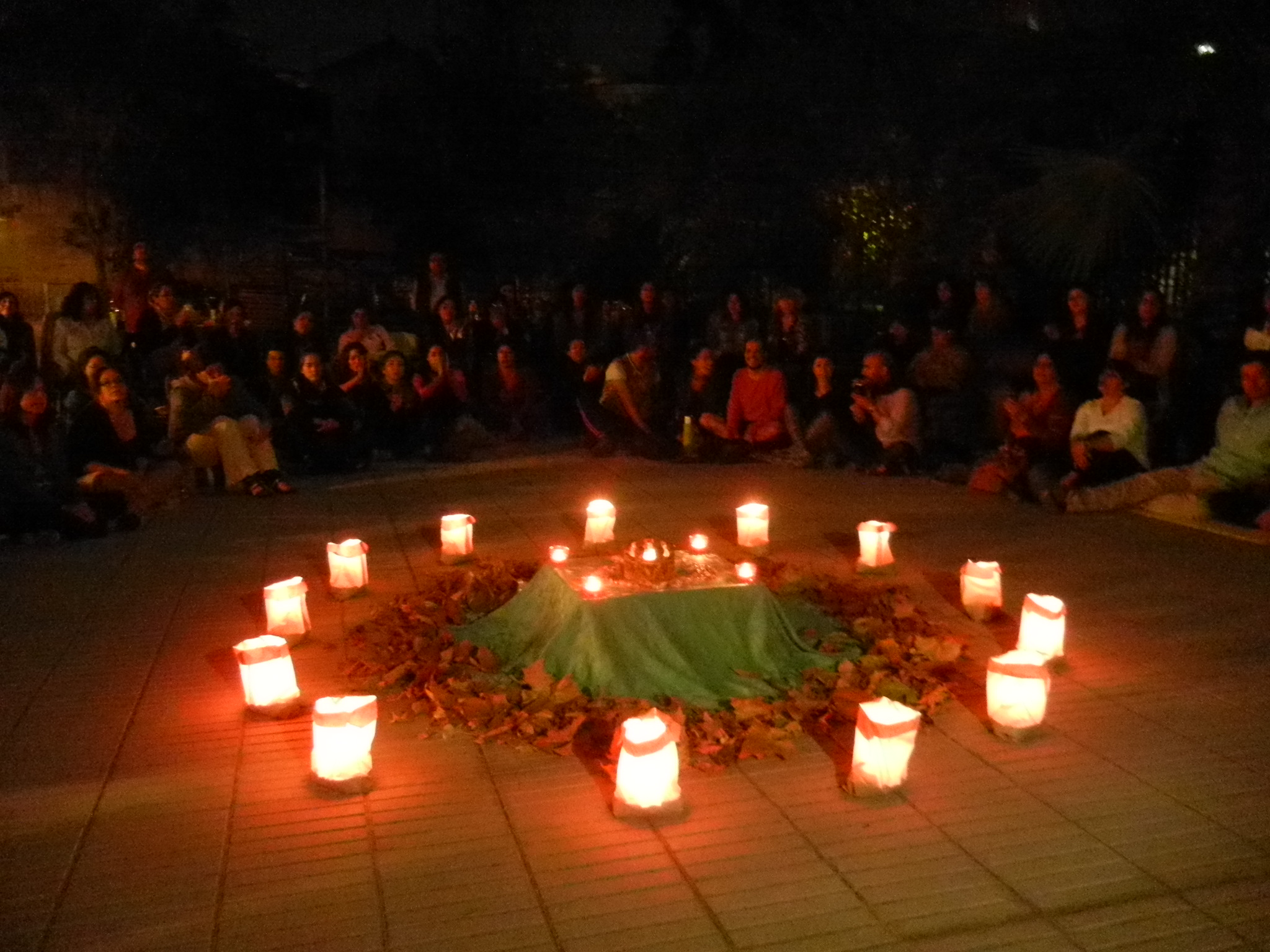 Y desde este remolino de marzo ya nos preparamos varios para el Ritual de Otoño en Mercedes, este 6 de abril… Ayer lo recordé cuando fuimos al cerro San Cristóbal a estar, hacer pic-nic, caminar descalzos por el pasto y mirar el follaje otoñal por fin con el aire más frío que los últimos días… Recién ahora, desde mediados de semana y más con los feriados me quedó algo de espacio para cosas mías, como juntarme con gente que no veía hace mucho y contarnos la vida, ver pelis, ir al cerro (mientras una perrita callejera-cerrera se nos une y le toca pollo porque la zanahoria por más que le insistí no le gustó nada), subir las fotos del reciente Ritual de Otoño en Santiago, comprar y reunir las últimas cosas para Mercedes…