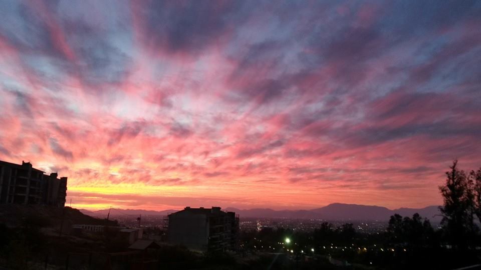 Estamos cansados, pero más alegres y confiados que antes. Conectando todo: satisfacciones, dolores, sanación, avances, risas, inicios, términos, pruebas, sincronías. Como esta imagen de atardecer que me quedé extasiada viendo desde el balcón y que una amiga comparte desde otro punto de Santiago, maravillada con el mismo cielo y momento… Acá la dejo, y en el próximo post viene la segunda reveladora acción de este particular enjuague…
