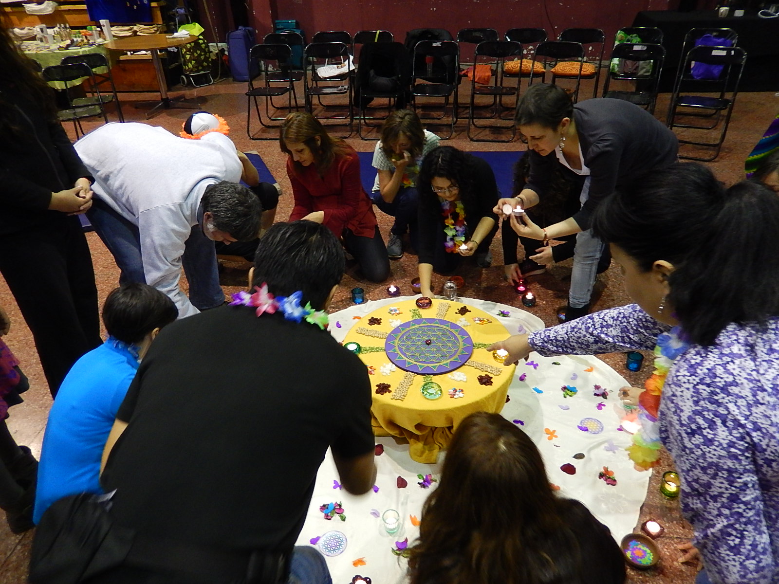 ahora viajan con gran amor y creatividad por cientos de corazones… Lo mismo sucedió cuando pedí ayuda en el post anterior porque varios de quienes siempre trabajan en cada ritual esta vez no podían y en cuanto publico la nota me responde una fiel pasajera de este blog, Patricia, quien queda encargada junto a Cote del altar, y luego escribe Erika, que recién se a une a este viaje porque escucha la sección de astrología en radio Cooperativa y viene feliz con su marido Víctor y ayudan en cada detalle desde temprano… Y como ellos, varios se unen con su trabajo y presencia desde simplemente estar disponibles para lo que sea hasta irnos a buscar en auto para traer todo lo necesario. También se une Marilyn que unos días antes me pregunta si podría venir con su nuevo arte y práctica: pinta budas a mano, lo que además de ser su propia meditación, la tiene reconectada con sus talentos, la belleza y el arte… Y le digo que sí puede venir porque este tiempo es para atreverse y también para unirnos y hacer que la energía circule… Cuando recapitulo todo esto siento cuánto amor y poder reside en cada uno de nosotros… Así, la ayuda llega y todo fluye para que esto sea lo que es: un encuentro con nosotros mismos, un rito para honrar lo vivido y abrir lo que viene, un espacio de conexión, una fiesta para el corazón…
