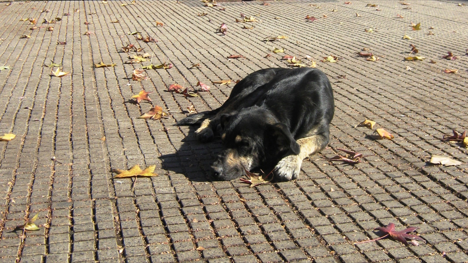 Este no es mi vecino perruno, pero es muy parecido y en esta pose se echó en plena calle