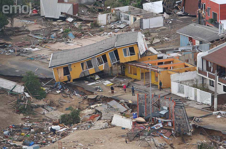 Los efectos del tsunami posterior al terremoto, en las costas del sur de Chile (foto aérea de Emol.com)