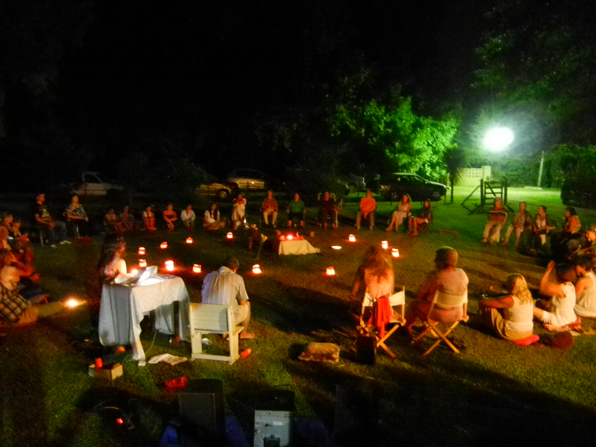 El día está lindo, con mucho calor, obvio, es febrero, pero el atardecer trae un poco de brisa suave y la noche estrellada. Comienzan a llegar curiosos y alegres casi 50 personas a vivir esta noche de cierre y apertura. Mi amiga-hermana Su es quien convoca y en quienes muchos confían dadas su entrega de corazón, sus sanaciones canalizadas y «la esquina de Luz» (la esquina de su casa) que es el espacio donde varios se reúnen a meditar cada miércoles hace un buen rato ya, guiados por ella…