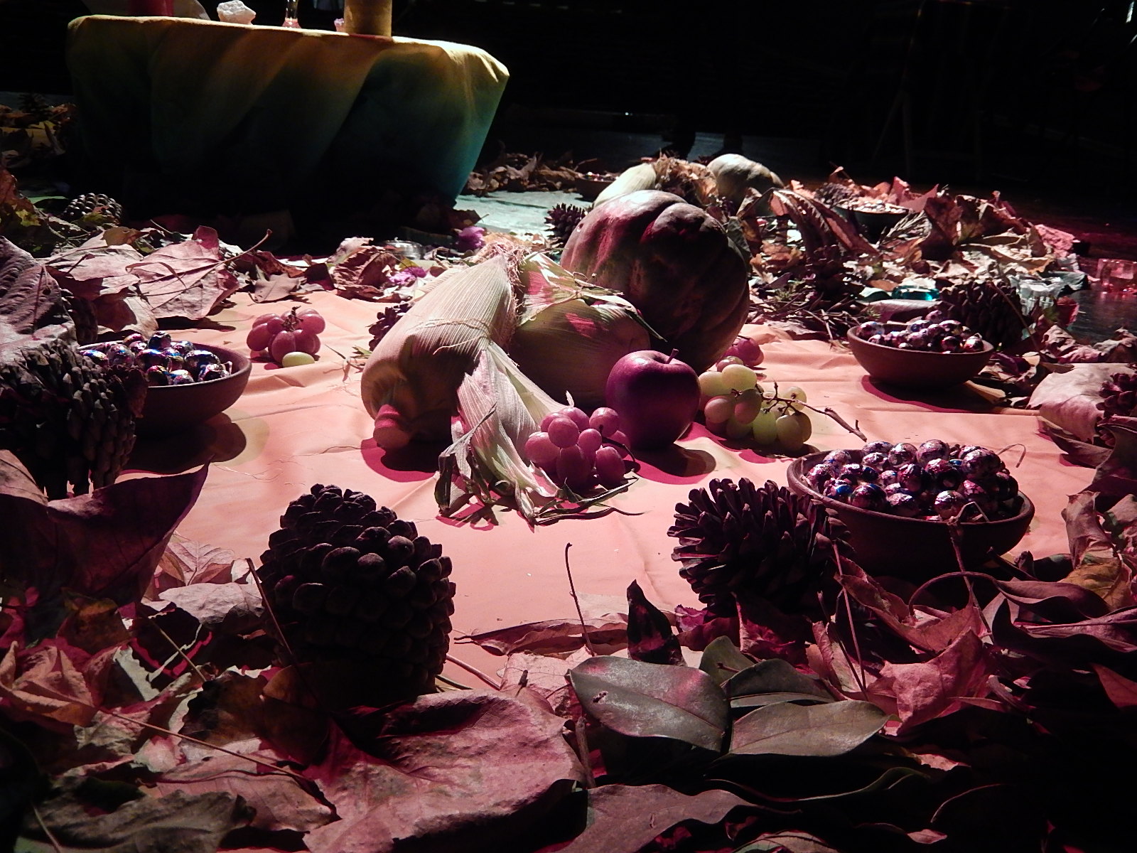 Los frutos del altarLa tarde de este 28 estuvo muy íntima, con una energía muy profunda… Chile -y todos quienes habitamos esta tierra sureña poderosa- está(mos) en una transformación dolorosa y bellísima a la vez, que nos remece y nos reconecta al mismo tiempo. Por lo mismo, cada paso de este Ritual de Otoño fue dedicado al norte chileno que hoy palpa la muerte, el desapego total, la angustia, la desolación y ‘futuramente’ el renacer. También enviamos nuestra energía al sur con sus bosques que arden y sus volcanes que despiertan con fuerza, que hacen saltar nuestros miedos, desesperación  y perplejidad…. Por eso bailamos y disfrutamos como ofrenda para todos los seres, incluidos nosotros mismos…