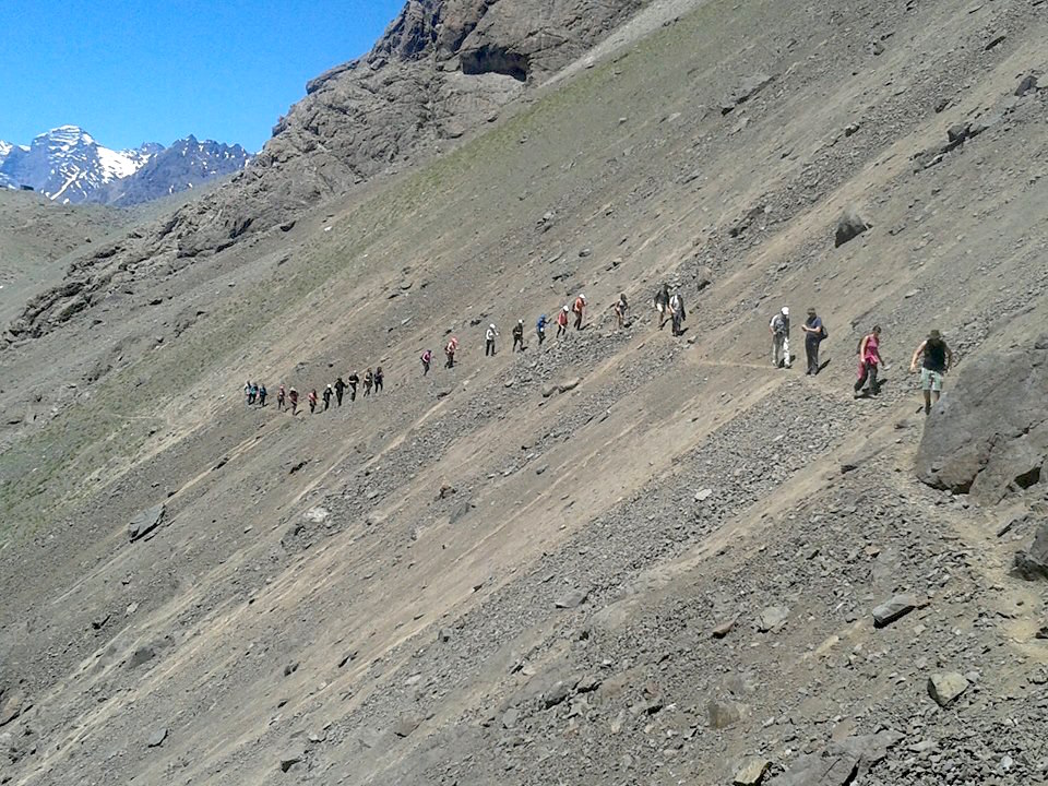 En medio de esto voy -con la intención de renovar energía y darle otro inicio al 2016– a la montaña (gran símbolo de Saturno; también de protección y solidez que bendice y ancla a este bello sur del mundo); a la Laguna del Inca (símbolo de Escorpión, agua fija; signo de donde Don Satur recién salió después de casi tres años y que nos hizo limpiar mucha oscuridad y soltar apegos, como también desarrollar más auto-confianza). Vamos con un grupo de varias nacionalidades (símbolo sagitariano, el extranjero; signo donde ahora Don Satur se sentó para que construyamos nuevos sentidos de vida durante todo 2016 y 17)… En el camino voy sintiendo la energía poderosa del lugar y saludo a la montaña, nuestra cordillera sagrada y me emocionan sus ríos y cascadas por fin más caudalosos después de una primavera más húmeda que lo usual. También las flores amarillas y rosadas en medio de la roca y la tierra seca… Una vez  llegados antes de emprender la caminata (casi escalada en varias partes) nos reunimos en círculo todos los viajeros (alrededor de treinta y cinco), con el sol  y la brisa de altura agradables. Con unas mínimas instrucciones comenzamos la aventura bastante silenciosa… Sí, porque a ratos es muy extrema y no puedes distraerte… Recuerdo una subida al Volcán de Agua en Guatemala donde todos los gringos caminaban tipo militares y yo pensaba ¿nadie quiere disfrutar el paisaje?, ¿nadie se cansa?, ¿o sólo yo estoy en mal estado físico y además me ‘distraigo’ con la belleza del lugar?… Mientras pasaban los guate de la zona ofreciendo «taxi», que eran caballos -ja, ja- para los turistas más flojos o menos preparados y yo fantaseaba con subirme a uno… Pero en eso me hice amiga de Layla y su madre, dos latinas que vivían en Estados Unidos y supe que no era la única cansada ni la que quería ir a otro ritmo para sentir ese espacio puro…