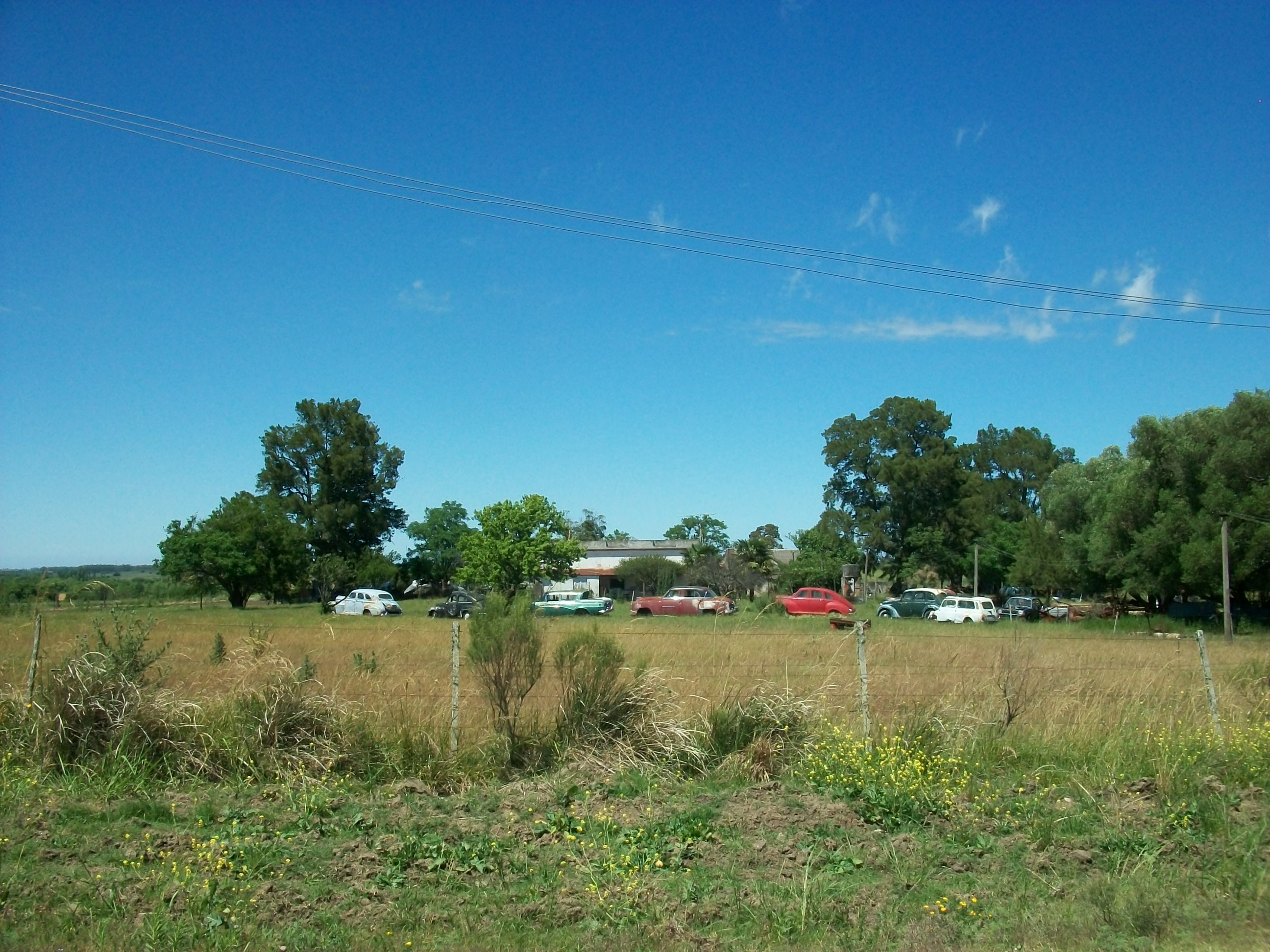 Y, bueno, vamos. Cruzamos el campo entre pequeñas lomas y caminos de ripio, pues el «chamán del pueblo», vive en una pequeña casa en medio de la nada. De hecho, por el camino lo único que nos cruzamos fue una casa con autos de los años 50 y 60 (supongo) en el frontis, y más allá un rebaño de vacas con su pastora.